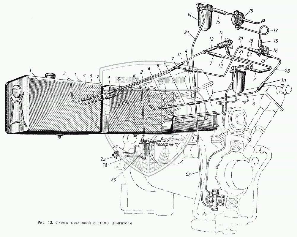 Каталог запасных частей к технике: МАЗ-537. Схема топливной системы двигателя