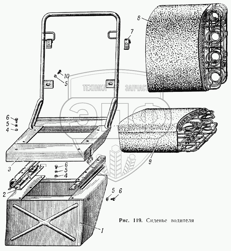 Каталог запасных частей к технике: МАЗ-537. Сиденье водителя