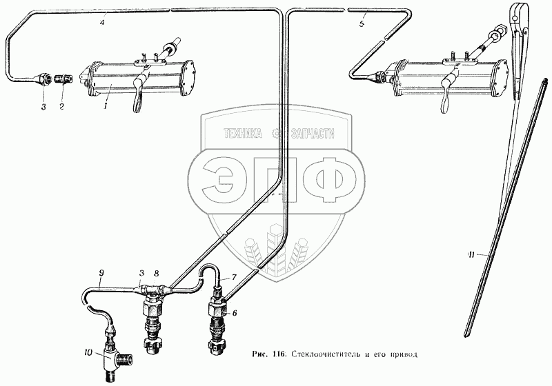 Каталог запасных частей к технике: МАЗ-537. Стеклоочиститель и его привод