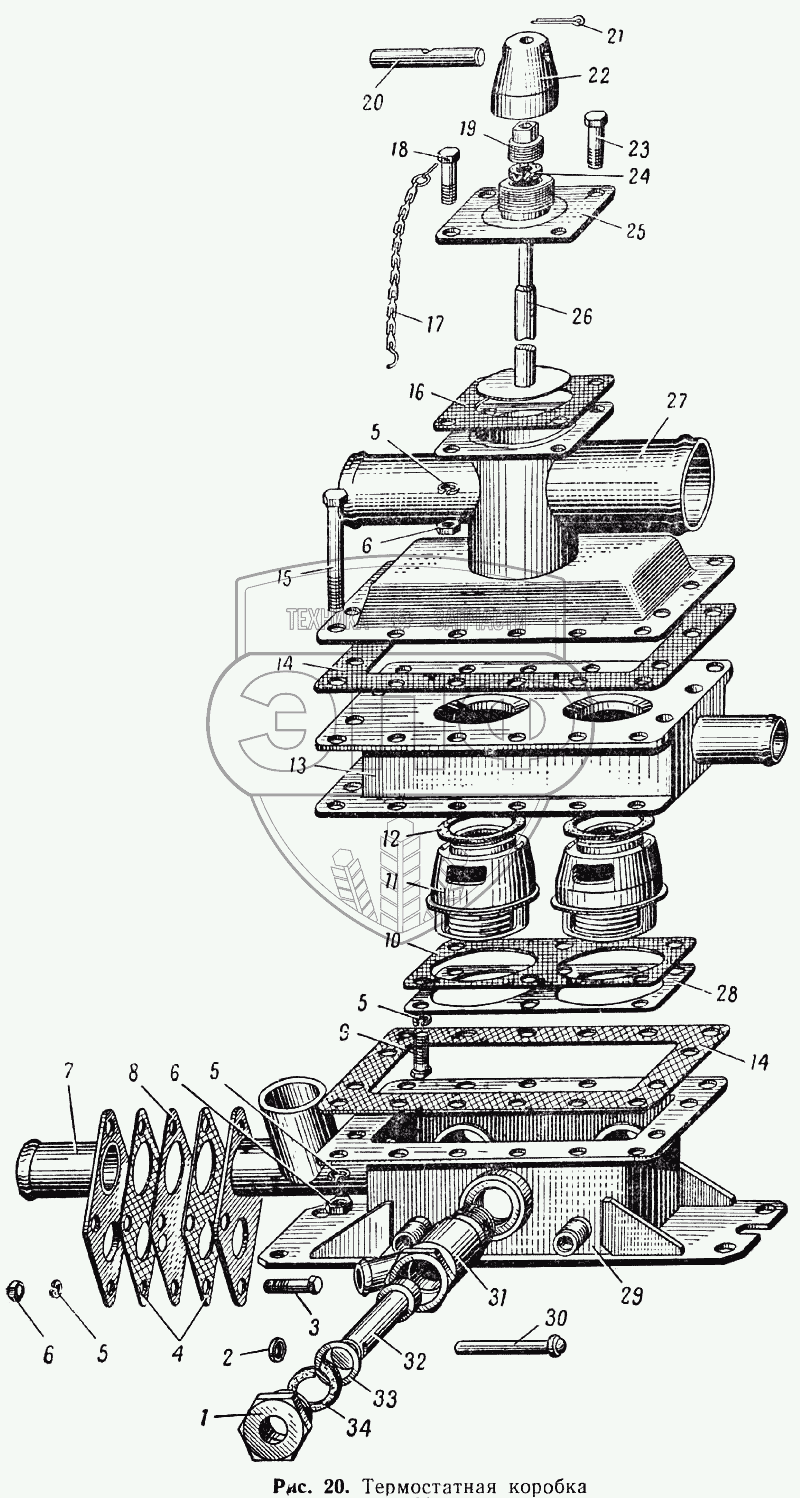 Каталог запасных частей к технике: МАЗ-537. Термостатная коробка