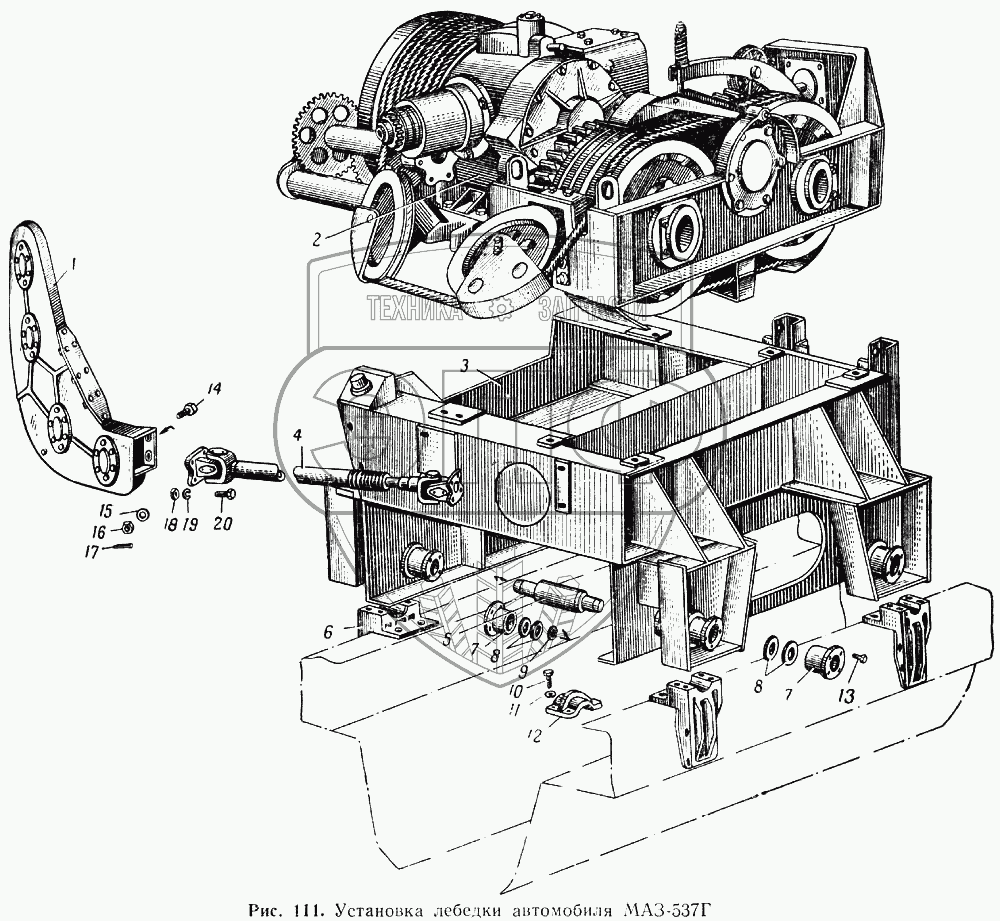 Каталог запасных частей к технике: МАЗ-537. Установка лебедки автомобиля МАЗ-537Г