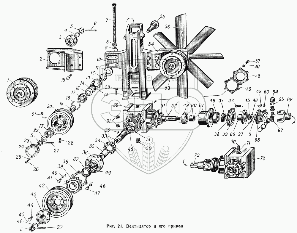 Каталог запасных частей к технике: МАЗ-537. Вентилятор и его привод
