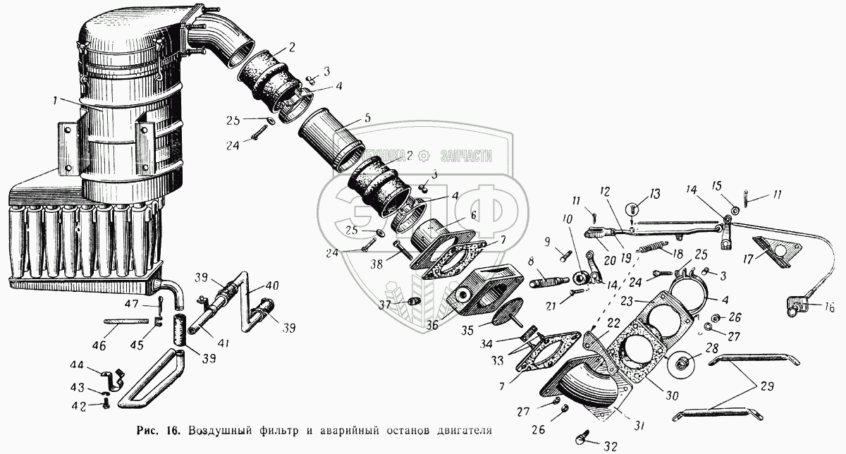 Каталог запасных частей к технике: МАЗ-537. Воздушный фильтр и аварийный останов двигателя