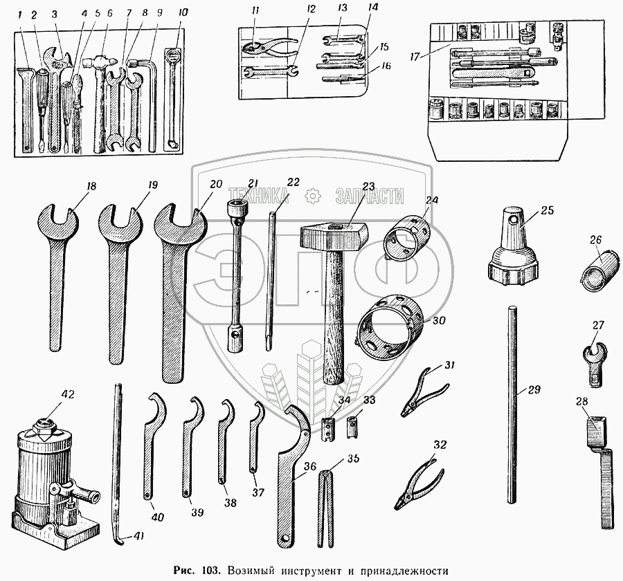 Каталог запасных частей к технике: МАЗ-537. Возимый инструмент и принадлежности