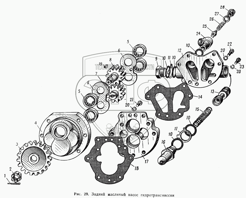 Каталог запасных частей к технике: МАЗ-537. Задний масляный насос гидротрансмиссии