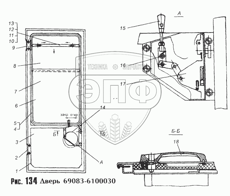 Каталог запасных частей к технике: МоАЗ-40481. Дверь 69083-6100030