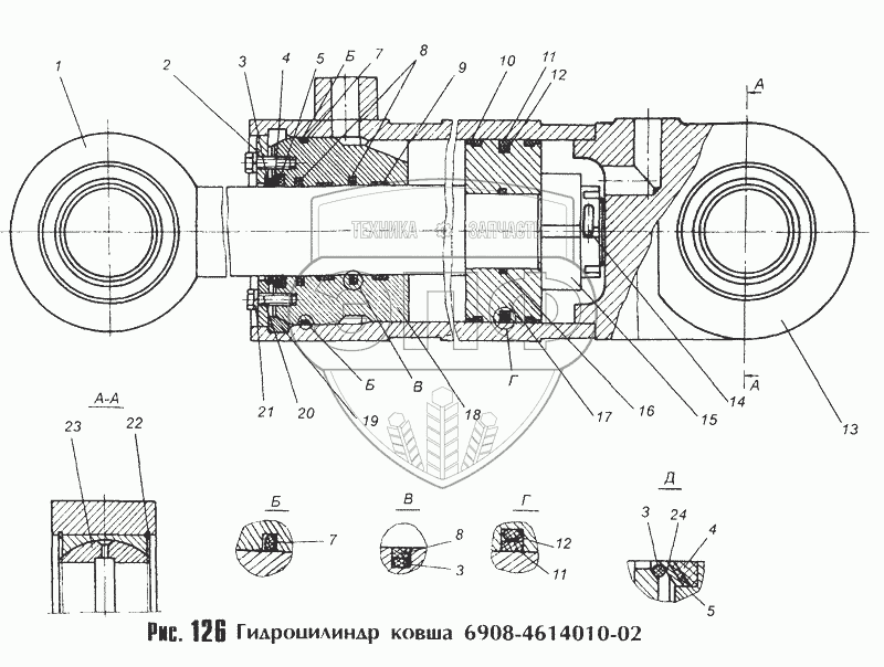 Каталог запасных частей к технике: МоАЗ-40481. Гидроцилиндр ковша 6908-4614010-02