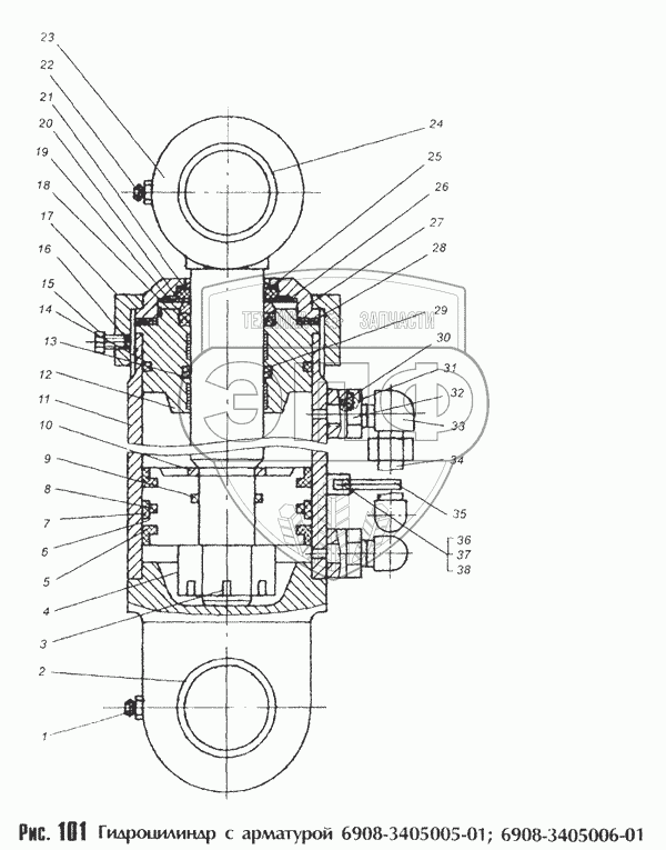 Каталог запасных частей к технике: МоАЗ-40481. Гидроцилиндр с арматурой 6908-3405005-01