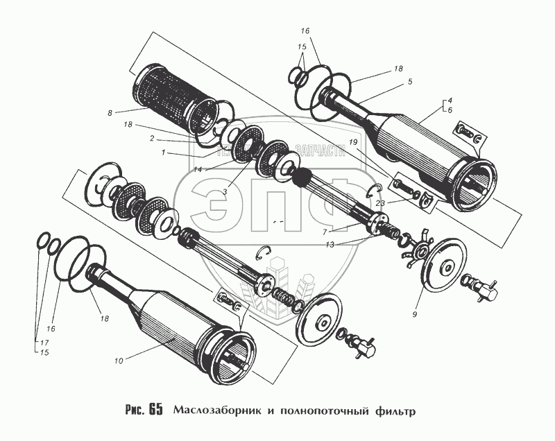 Каталог запасных частей к технике: МоАЗ-40481. Маслозаборник и полнопоточный фильтр