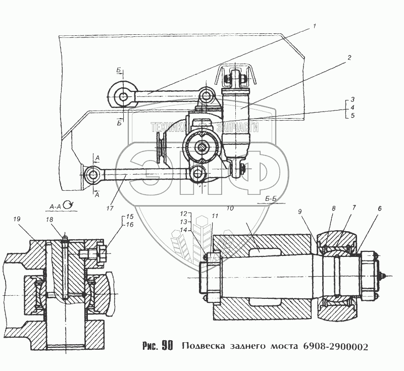 Каталог запасных частей к технике: МоАЗ-40481. Подвеска заднего моста 6908-2900002