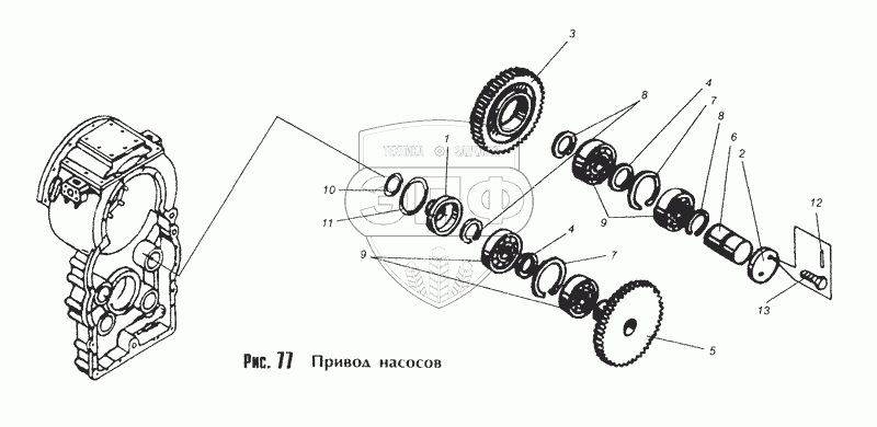 Каталог запасных частей к технике: МоАЗ-40481. Привод насосов