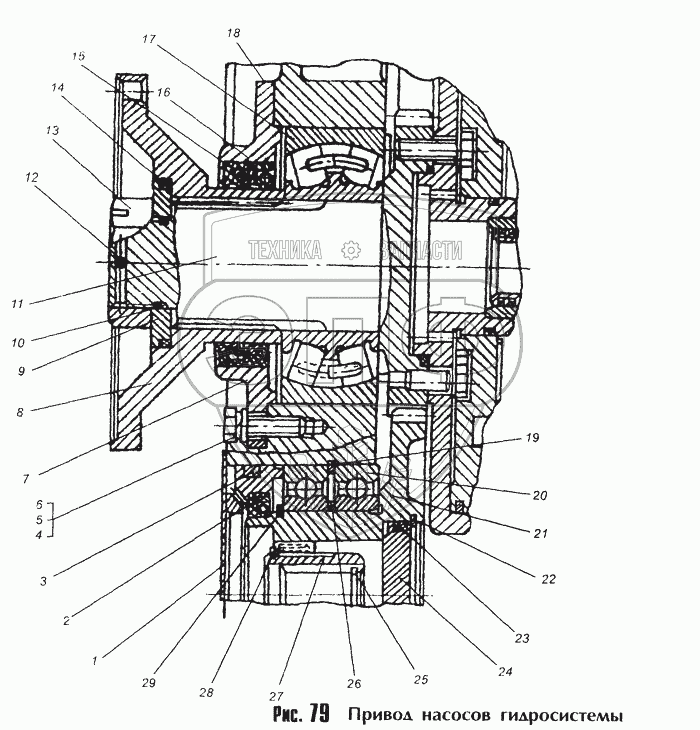Каталог запасных частей к технике: МоАЗ-40481. Привод насосов гидросистемы