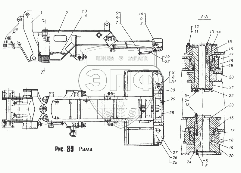 Каталог запасных частей к технике: МоАЗ-40481. Рама (После 26.01.2000)