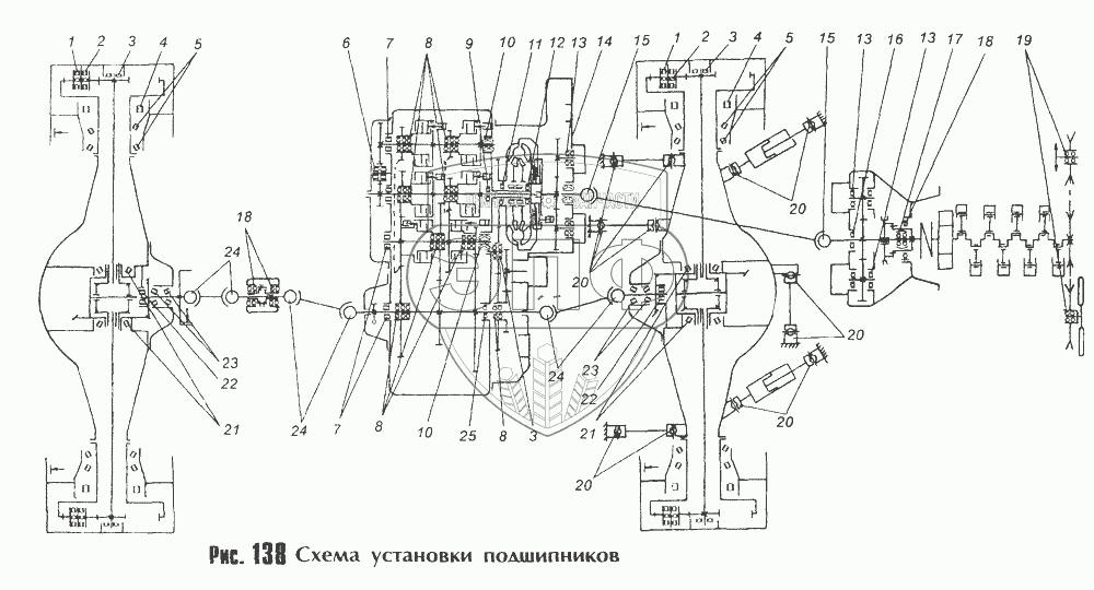 Каталог запасных частей к технике: МоАЗ-40481. Схема установки подшипников