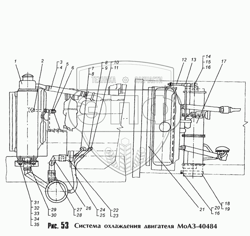 Каталог запасных частей к технике: МоАЗ-40481. Система охлаждения двигателя МоАЗ-40484