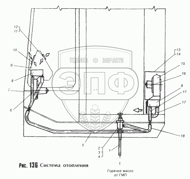 Каталог запасных частей к технике: МоАЗ-40481. Система отопления