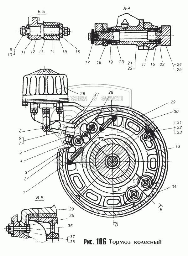 Каталог запасных частей к технике: МоАЗ-40481. Тормоз колесный