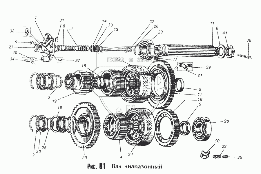 Каталог запасных частей к технике: МоАЗ-40481. Вал диапазонный
