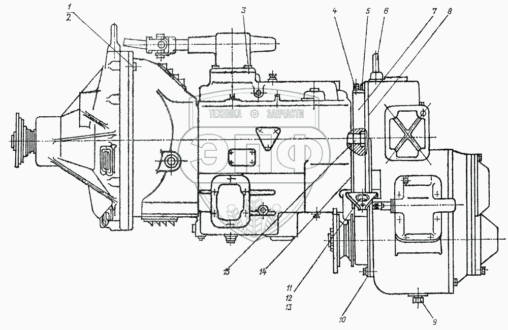 Каталог запасных частей к технике: МоАЗ-6014. Блок трансмиссии 64423-1700000
