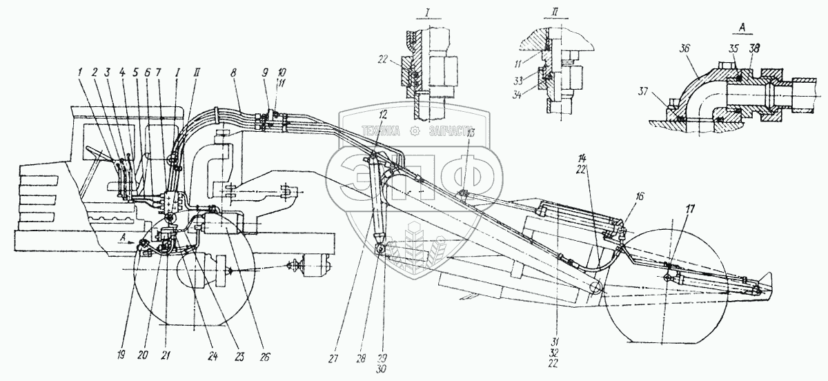 Каталог запасных частей к технике: МоАЗ-6014. Гидросистема скрепера