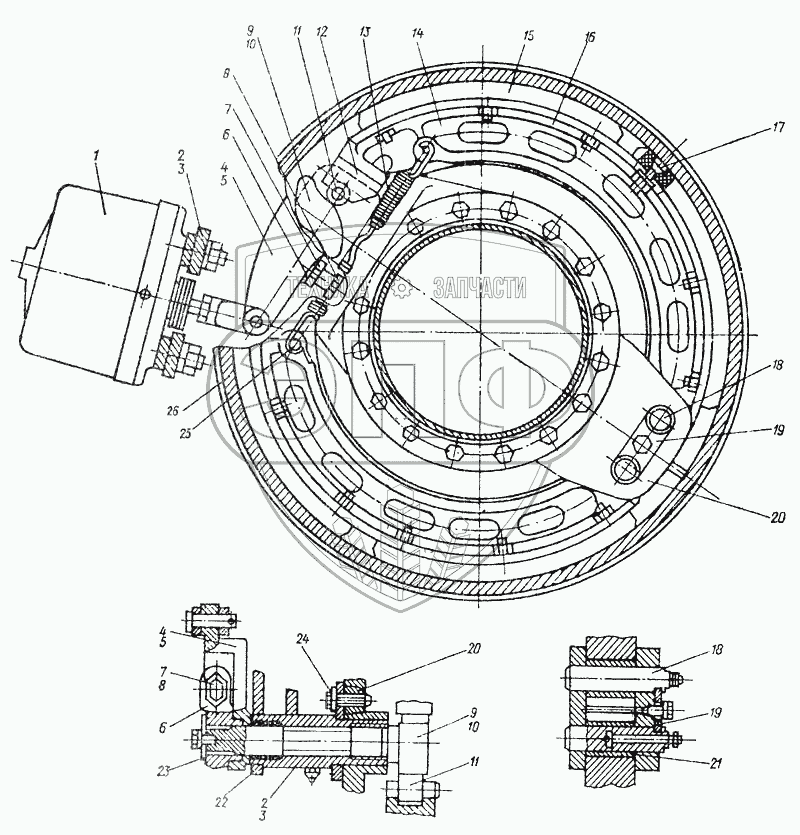 Каталог запасных частей к технике: МоАЗ-6014. Колесный тормоз тягача 6442-3501000