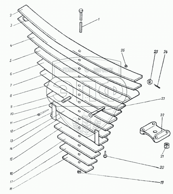 Каталог запасных частей к технике: МоАЗ-6014. Рессора 546П-2912014-Б