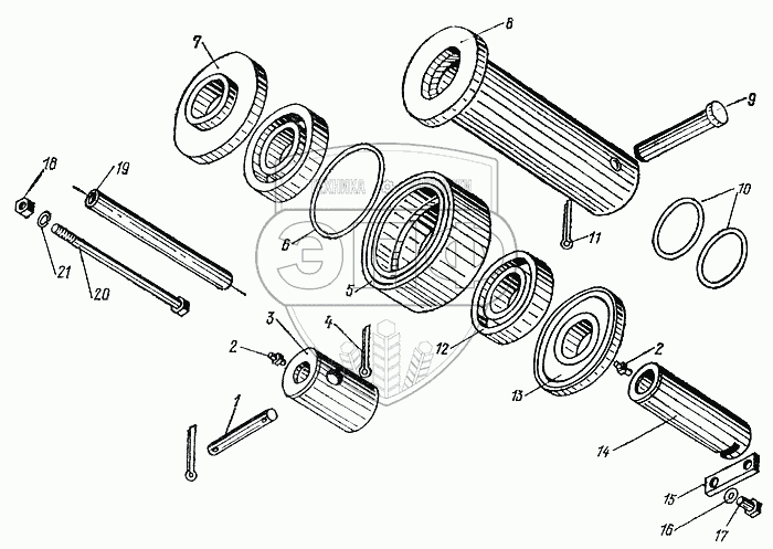 Каталог запасных частей к технике: МоАЗ-6014. Ролики, пальцы