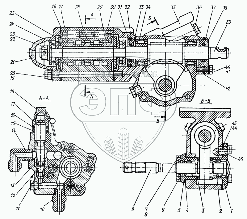 Каталог запасных частей к технике: МоАЗ-6014. Рулевой механизм с распределителем 6442-3400010