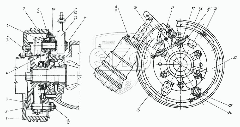 Каталог запасных частей к технике: МоАЗ-6014. Стояночный тормоз 6401-3507006-20