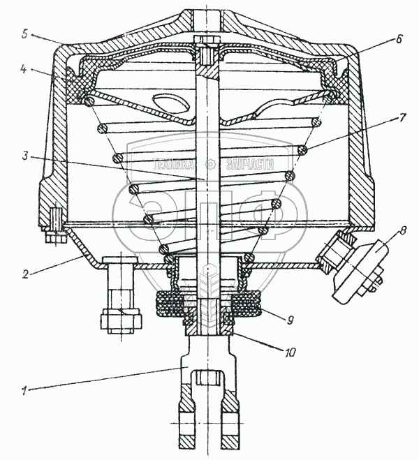 Каталог запасных частей к технике: МоАЗ-6014. Тормозной цилиндр 6442-3519110