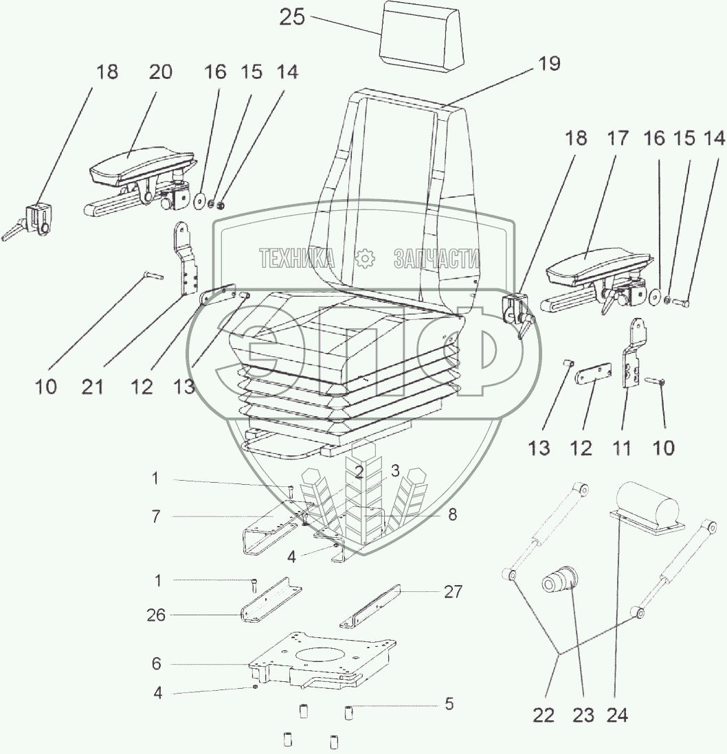 Каталог запасных частей к технике: Мозырский МЗ BELARUS-SAMPO МЛХ46. 13GA Сиденье;Seat