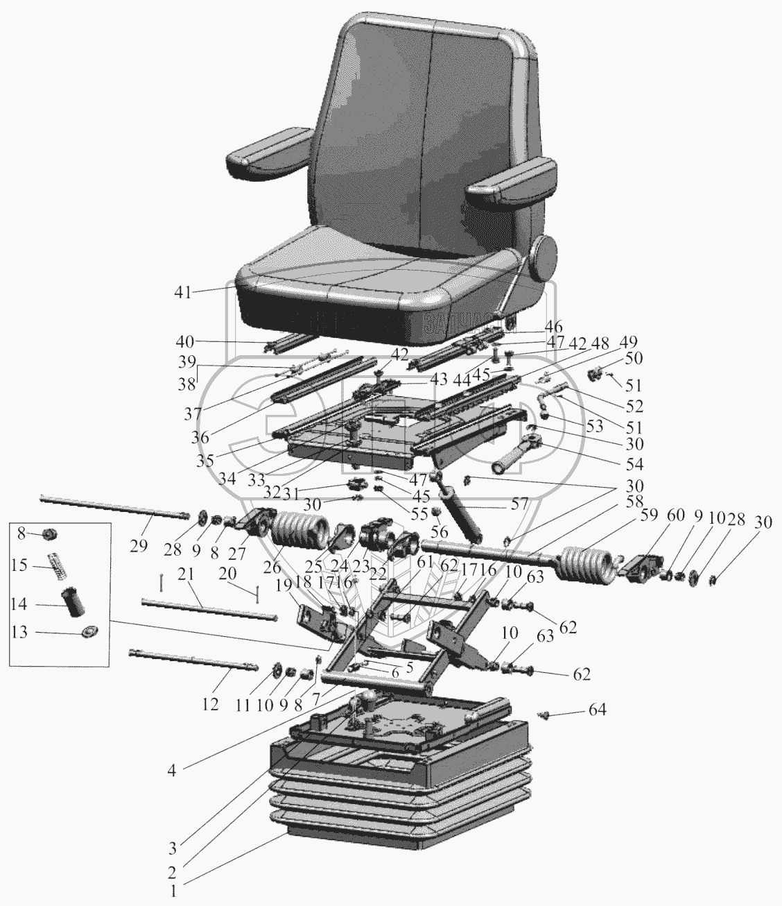 Каталог запасных частей к технике: МТЗ 1502. Сиденье оператора