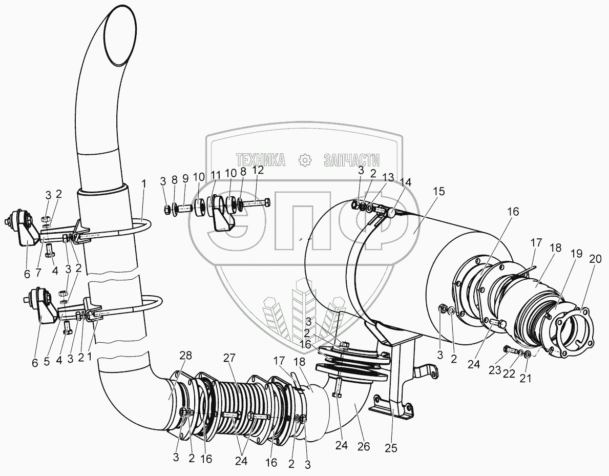 Каталог запасных частей к технике: МТЗ 1502. Система выпуска