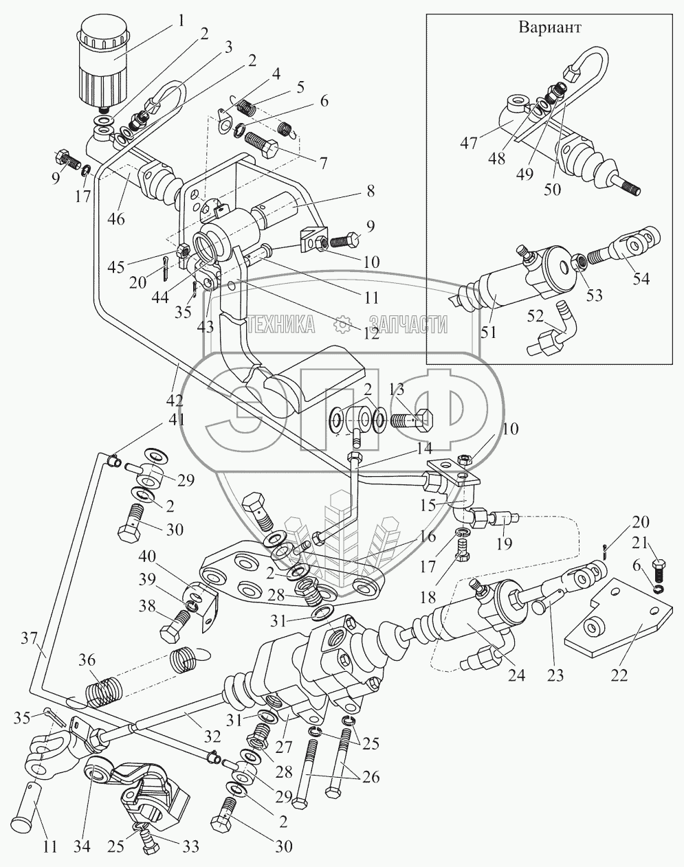 Каталог запасных частей к технике: МТЗ 1502. Управление сцеплением