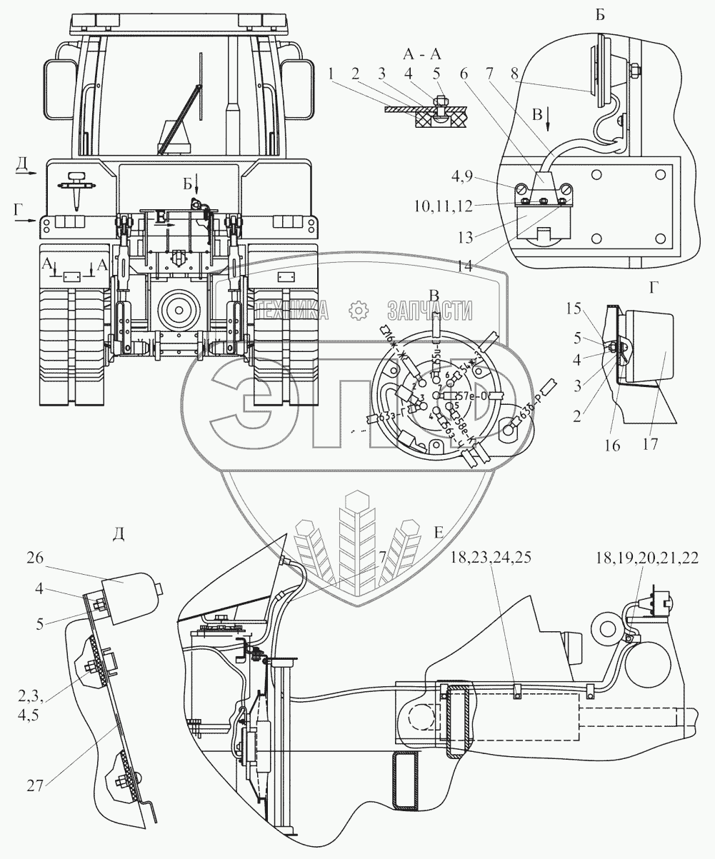 Каталог запасных частей к технике: МТЗ 1502. Установка фонарей задних