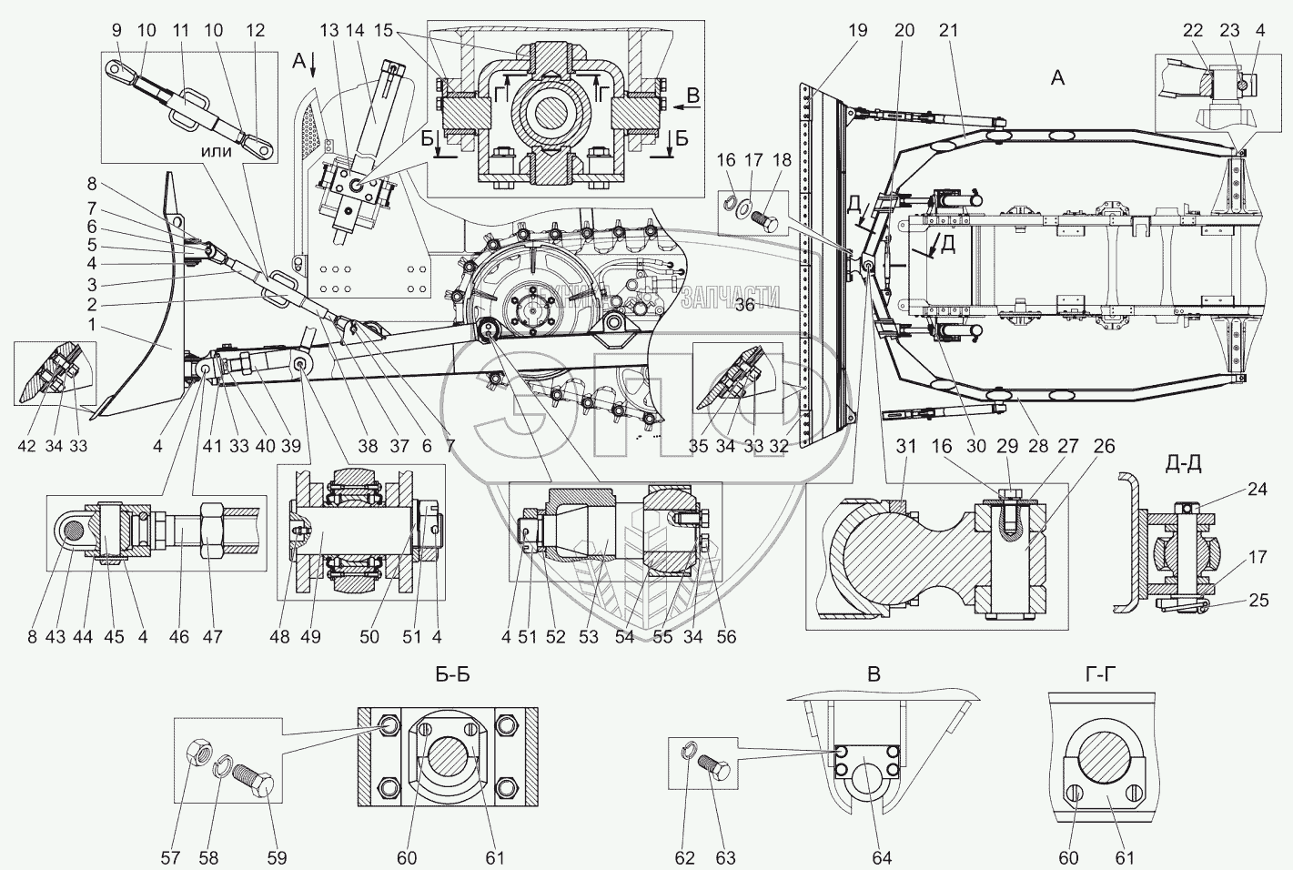 Каталог запасных частей к технике: МТЗ 1502. Установка отвала 1502-4607500