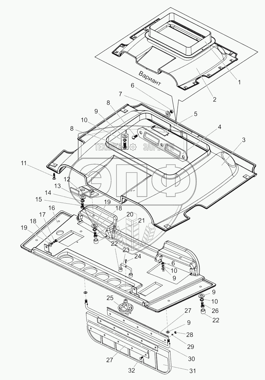 Каталог запасных частей к технике: МТЗ БЕЛАРУС-1502. Установка верхнего пояса. Панель. Козырек