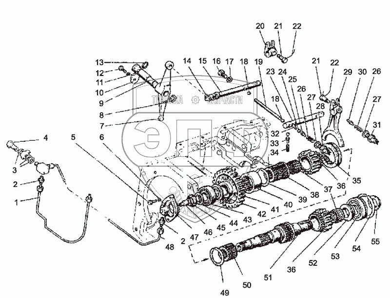 Каталог запасных частей к технике: МТЗ МЛ-131. Коробка передач. Вал пониженных передач