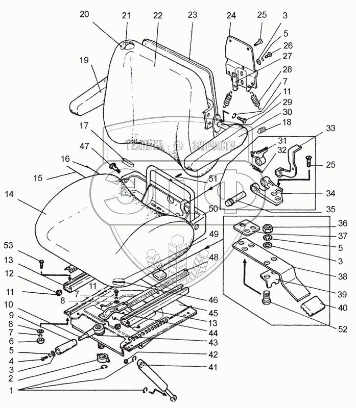 Каталог запасных частей к технике: МТЗ МЛ-131. Сиденье оператора