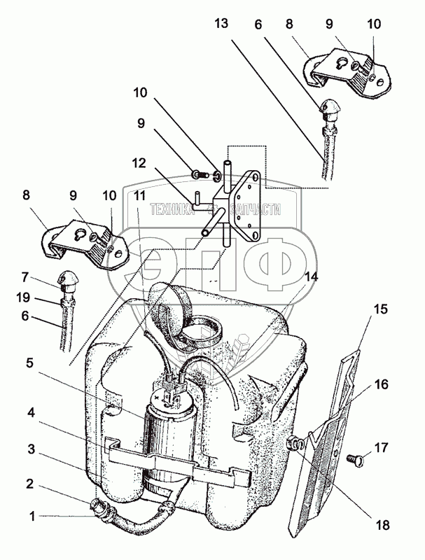 Каталог запасных частей к технике: МТЗ МЛ-131. Стеклоомыватель