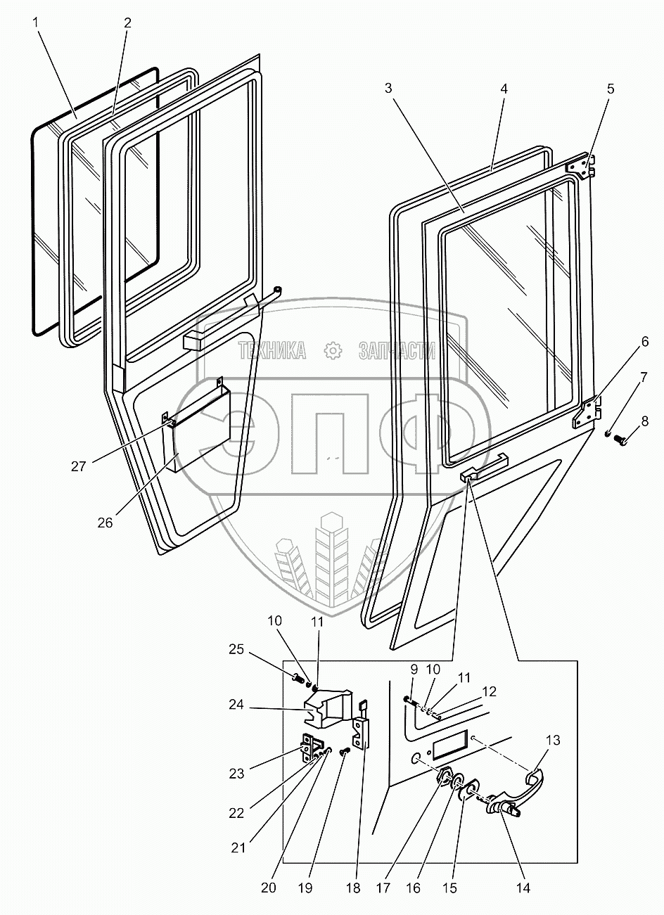 Каталог запасных частей к технике: МТЗ МЛПТ-344. Двери. Запорные устройства дверей