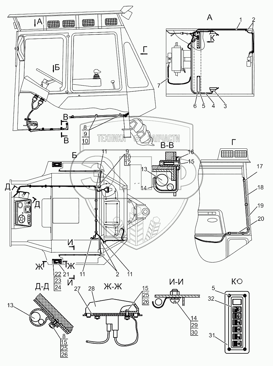 Каталог запасных частей к технике: МТЗ МЛПТ-344. Электрооборудование кабины