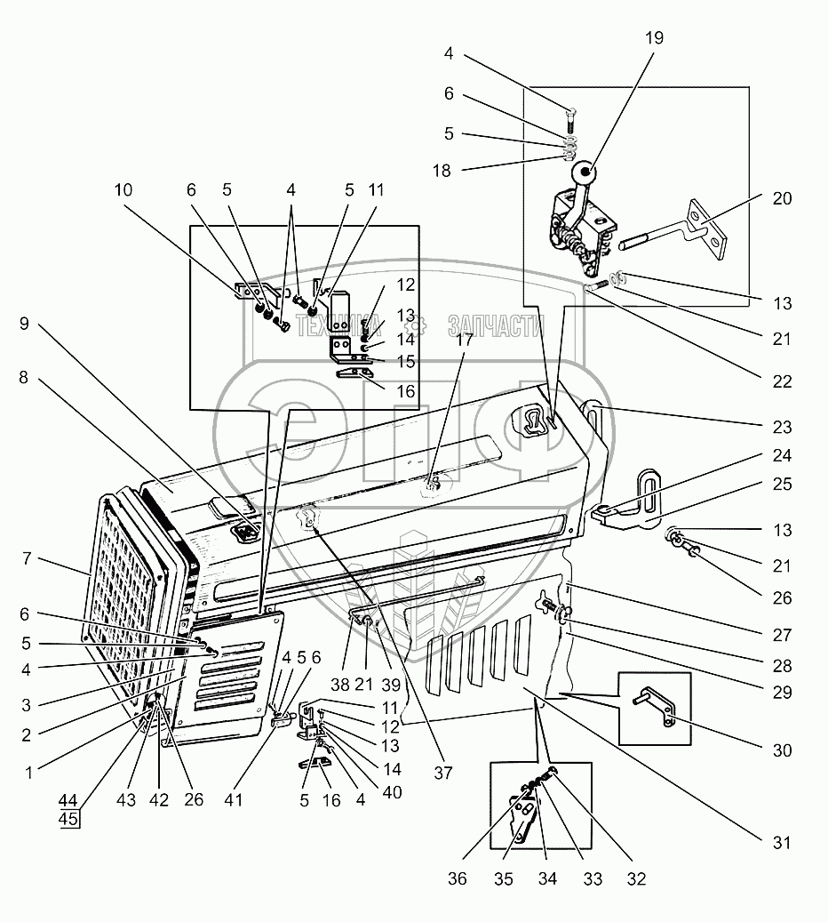 Каталог запасных частей к технике: МТЗ МЛПТ-344. Облицовка. Установка боковин