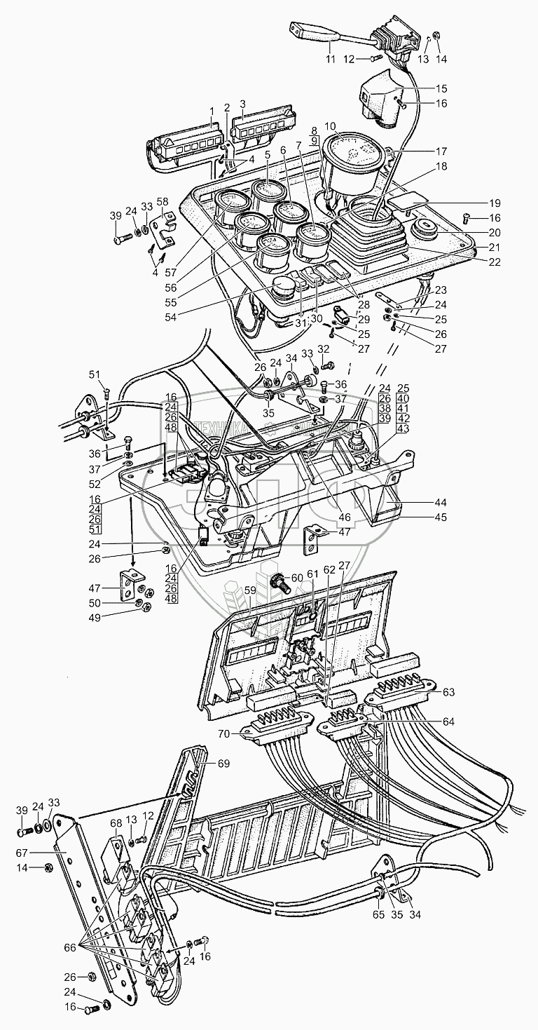 Каталог запасных частей к технике: МТЗ МЛПТ-344. Щиток приборов. Панели. Основание. Крышка