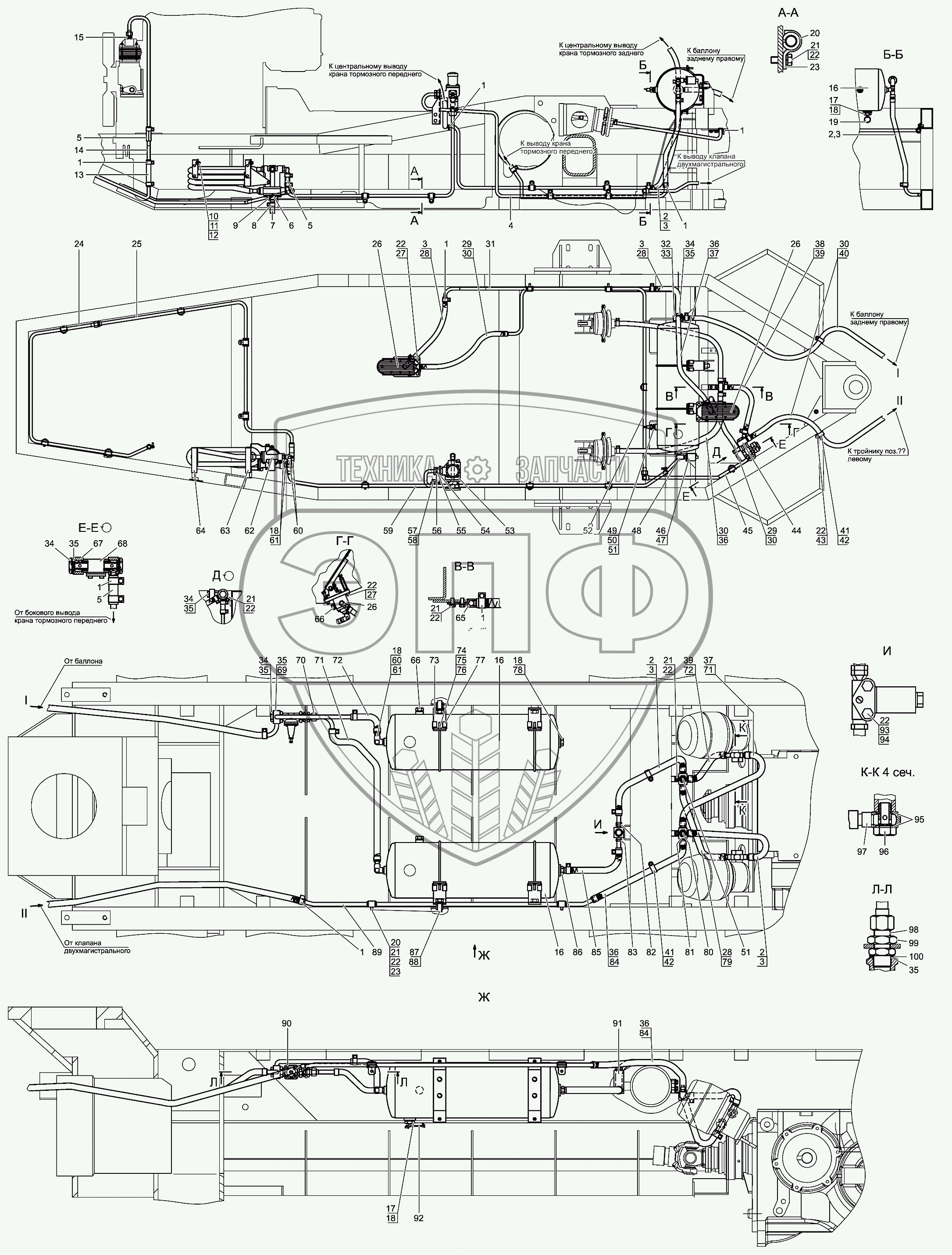 Каталог запасных частей к технике: МТЗ МЛПТ-344. Система управления тормозами
