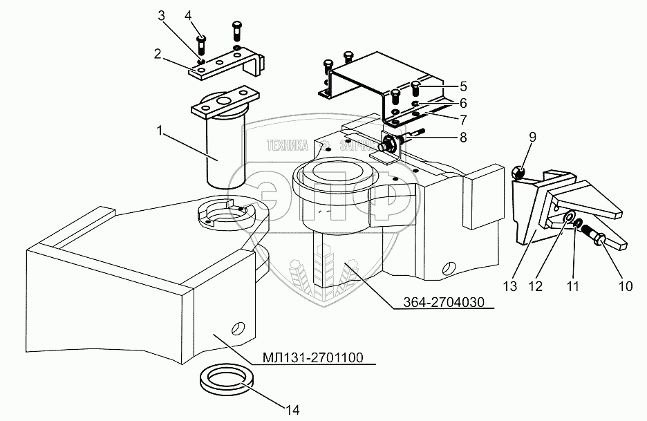 Каталог запасных частей к технике: МТЗ МЛПТ-344. Соединение полурам. Установка датчика. Стопор