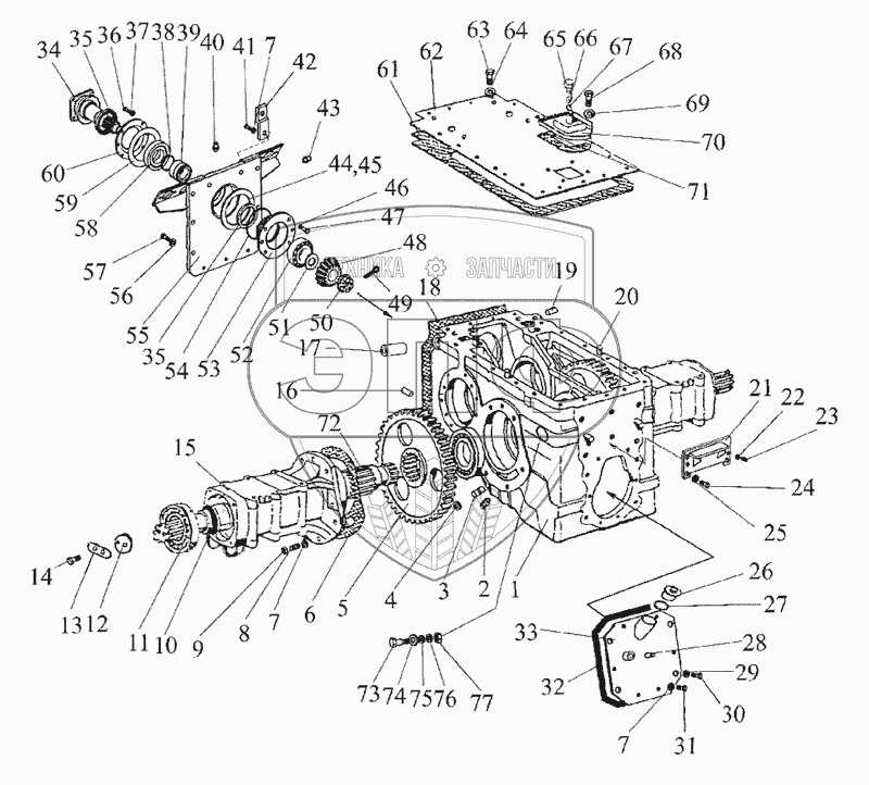 | 48 | 50-1701105-Б | Шестерня главной передачи (в запасные части поставляется только в комплекте 50-2403014) | Нет на складе | |