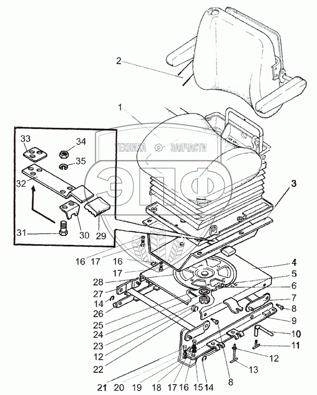 Каталог запасных частей к технике: МТЗ МЛПТ-354М. Установка сидений, механизм подъема