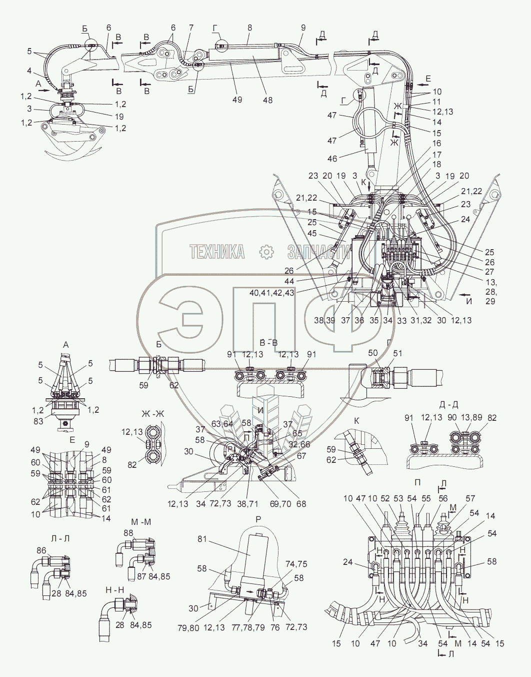 Каталог запасных частей к технике: МТЗ МПТ-461.1. ГМ42-4500000 Гидросистема