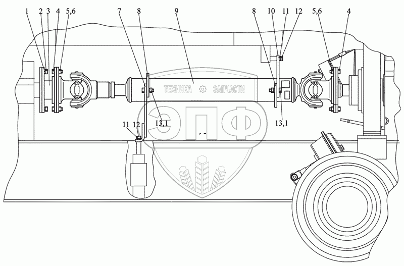 Каталог запасных частей к технике: МТЗ МР-40-01. Привод карданный